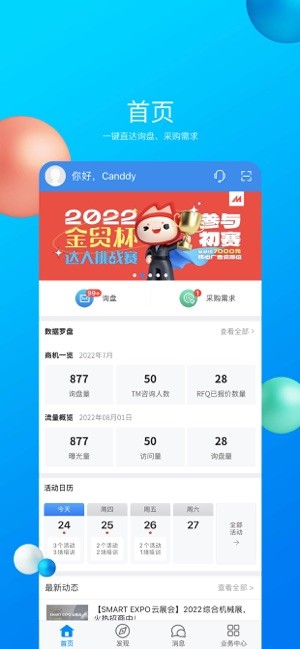 - 浏览平台举办的线上线下活动信息,如展会、研讨会、促销活动等。