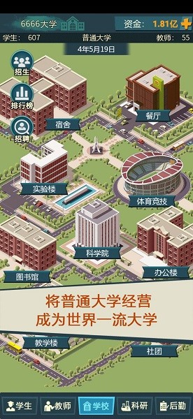 《模拟经营我的大学》是一款模拟类经营类游戏,玩家在游戏中扮演大学校长的角色,需要玩家管理和制定各种政策措施,游戏中真实模拟了大学相关现状。