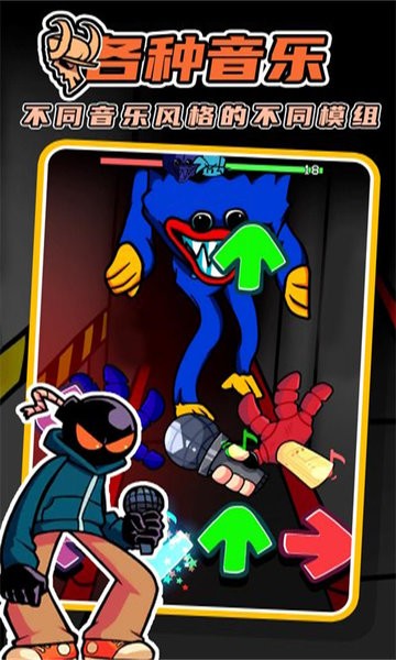 这款fnf同人作品手游是一款以音乐为主题的竞技游戏,玩法超级有趣。游戏中有超多经典模组,比如索尼克和波比大蓝猫,可以解锁各种音乐风格,随时挑战冒险。操作简单但节奏感强,需要跟着鼓点点击屏幕,考验反应力。卡通风格的角色设计也很吸引人,广场场景的舞蹈更是华丽炫酷。