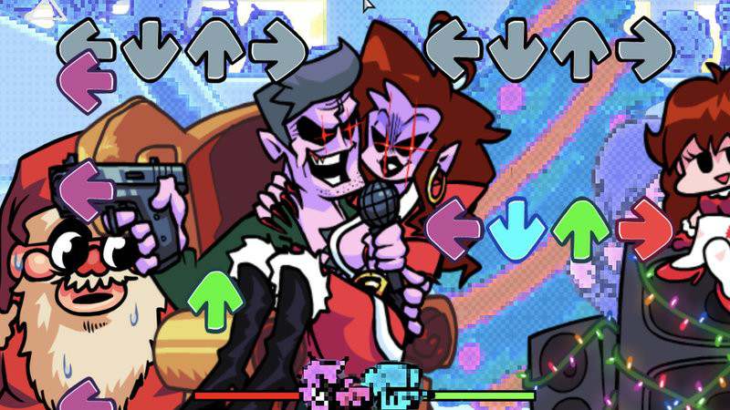 黑色星期五之夜-周五夜放克是相当精彩的音乐节奏游戏。在这款游戏中玩家们将会开启属于自己ide黑色星期五聚会。在这里你们会一边k歌一边舞蹈,真的会非常快乐!而与此同时,你还要像当年玩节奏游戏一样,随着游戏音乐的节拍,进行上下左右的点击哦!