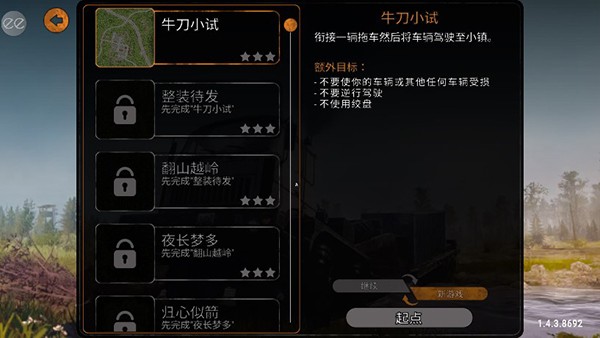 14、大奖赛驾驶A-3151车辆抵达任意关卡的所有观测点原木大师交付货物不幸翻车,然后再把原木捡回原位猛龙过江。