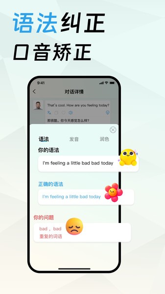 本软件的智能纠错功能,能够及时指出用户发音或语法上的错误,并提供相应的建议和改进方案,帮助用户及时纠正错误,提高口语表达的准确性和流畅度。