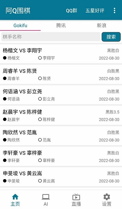 这里你可以实时获取最新的赛事棋谱