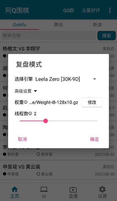 可以和AI下棋,或是观看两个AI的对局