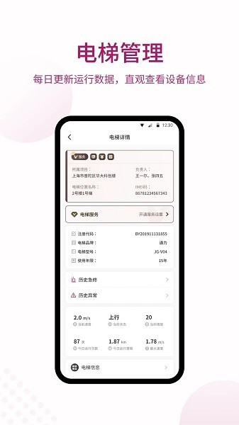 最近看到一个关于电梯管理的APP,感觉挺实用的。这个叫爱佳梯的软件主要是给电梯维保人员用的,用来管理和维护电梯设备。它能实时监控电梯运行数据,每天更新信息,还能推送通知提醒异常情况,这样维保工作就方便多了。