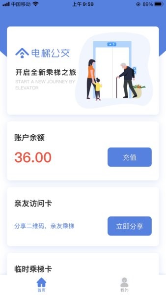 电梯公交app最新版可以在手机上控制电梯,支持刷脸认证,能够进余额查询和充值,可以设置亲友的访问卡,授权给亲友以后,下次来可以直接坐电梯,能使可以生成临时乘梯卡,能够管理乘梯的订单和地址。