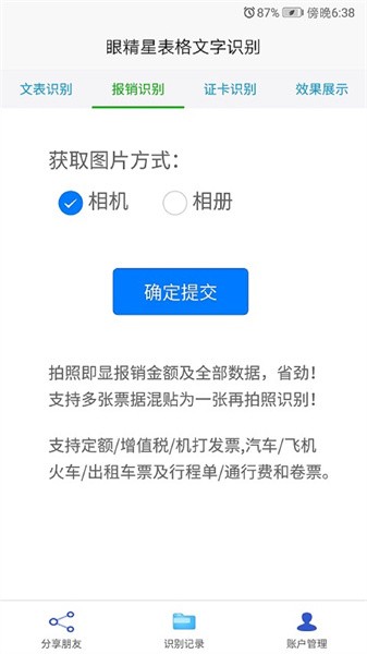 2、表格识别,对于表格进行拍照之后能够识别表格内容并且完成快速提取