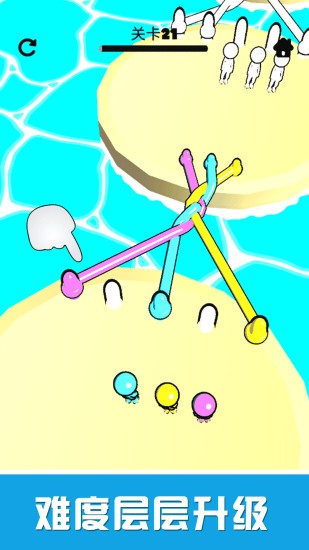 尽力解开所有的结,游戏玩法很简单,十分适合用来打发时间。