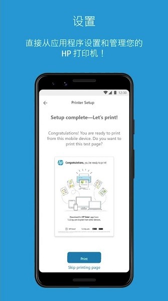 使用此应用程序自动检测是否可以使用手机进行打印,然后使用 HP 打印服务插件设置移动设备以打印图像和 PDF 文档等。