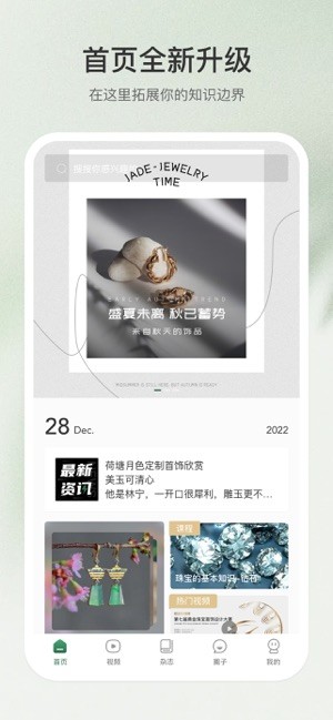 -- 热门资讯板块全新升级,随时掌握珠宝信息,首页上方点击“热门”,行业动态、设计趋势、玉雕美学、文化风尚、人物访谈、专业赛事、前沿活动……精彩珠宝世界尽在掌中。