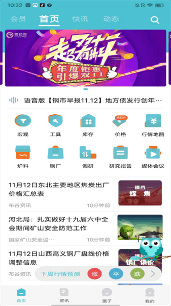 布谷先知是一个以钢材市场资讯软件,你知道现在的钢材价格吗?你是否想投资钢材市场如果你对上述问题还是一个小白,那么快来使用布谷先知这款app吧它能给你带来最新的钢铁资讯,对app有兴趣的朋友快来下载吧。