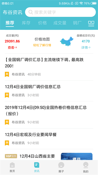 1.布谷先知3.10版本上线的圈子功能,除了原本全国各地的钢材大圈以及随时随地分享类朋友圈动态外,新增了供需发布小助手,