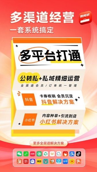 支持微信、微博、头条等渠道全打通,提供一站式精准广告。