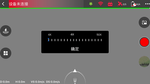 3、显示飞行器上摄像头拍摄的实时视频,视频数据通过2.4G WiFi协议传输。