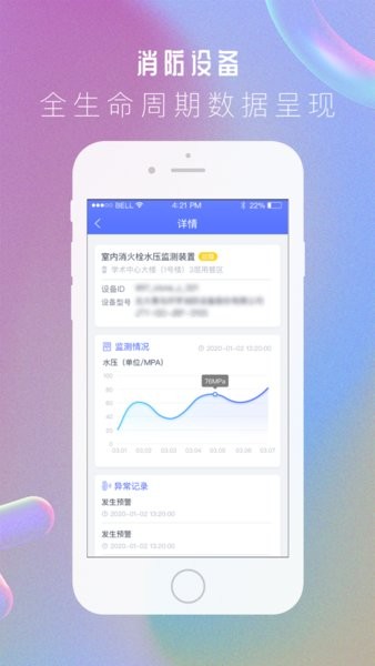 智安app官方最新版是由智安app官方科大立安推出的智慧消防管理软件,可以在手机上查看消防设备的检测情况,水压、异常预警等一目了然,有非常贴心的火灾报警和电气火灾预警,报警信息一目了然,能查看消防占用提醒并及时处理。