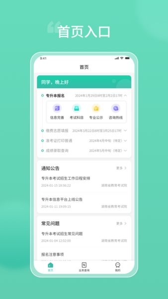 可查询考试成绩;也能在规定时间内查询本人专升本考试录取情况。此外,考生可在报名期间登录app查看个人报名状态和审核结果。