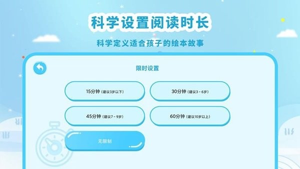 贴心护眼模式:产品开发贴心护眼模式,同时可以设置app使用时长限制,超时进入休息模式,让孩子养成良好的阅读习惯,家长更放心。