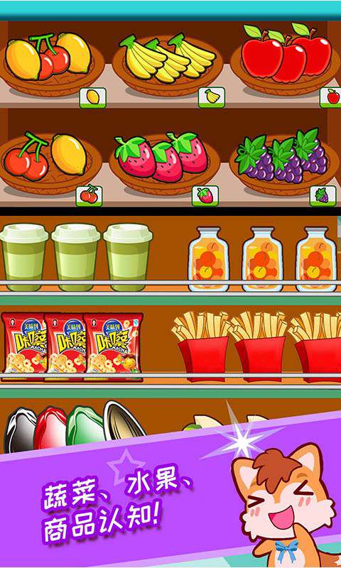 宝宝开心超市官方版是早教启蒙类的应用软件,面向广大的儿童。这里拥有着丰富内容,以卡通的画面设计呈现,各种蔬菜、水果、零食等可以了解,引导孩子认知学习,还以趣味动画和互动游戏的方式,加强宝宝记忆,不断开发孩子智力、观察能力,寓教于乐!