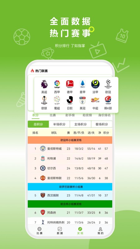 联赛球队球员数据,赛程积分、球员状态、近期战绩、交锋记录、数据统计,多维度全面呈现球队的实力排名。