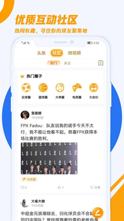 走出一方天地,收货全球视野,千万球迷汇聚交流社区,一起看球吐槽,热闹非凡,超有趣,更有不定期组织线下赛事,邀请好友,相约球场,一起狂欢。