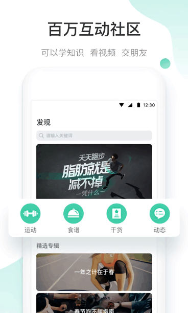 拥有海量健康营养干货、体系化运动视频和健康减脂食谱,还能和达人互动分享成功经验,健康生活每一天。