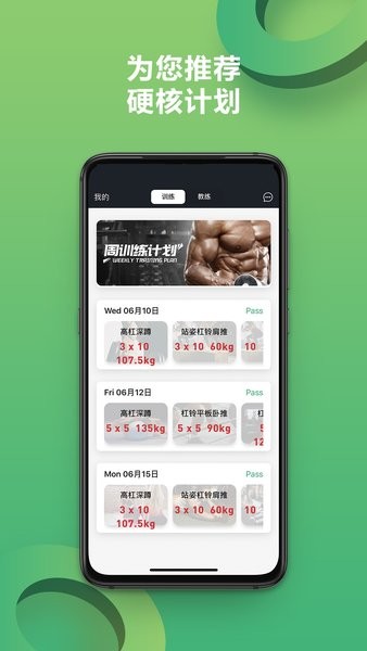 训练成果的系统性记录与反馈,从最科学的效果给用户树立健身训练的观念