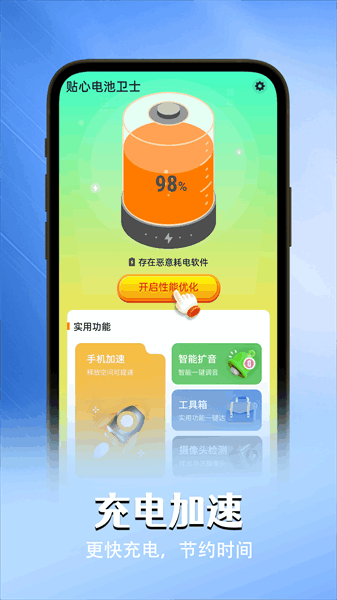 贴心电池卫士app,一款专门用于优化手机电池性能的工具软件,内置强大的扫描功能,可以在线让用户查看手机电池的续航问题,一键掌握软件耗电信息,从而有针对性的处理问题,超级的方便好用,有需要的朋友快来下载用起来吧~