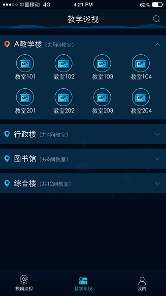 校园巡视系统是一款针对校园提供监控巡视服务的应用软件,覆盖操场、宿舍楼、食堂、学校门口、教学楼、行政楼、图书馆、综合楼等多种场景,支持校园监控,教学巡视,掌握校园师生状态,画质清晰,在线播放查看,加强安防保护!