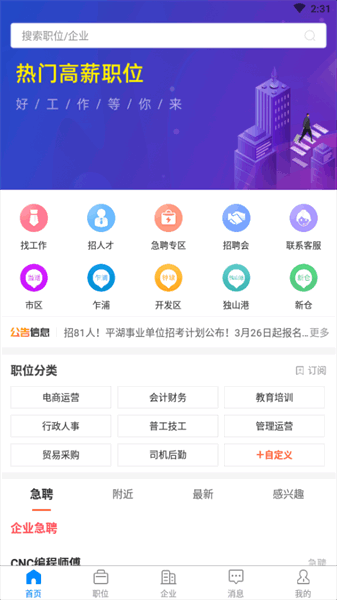 平湖人才网app,你的必备招聘求职软件,平台上有大量的工作岗位提供给大家选择,且都根据工作性质、地理位置、薪资要求等进行了详细的分类,用户可以快速定位搜索想要的职位,在线与hr沟通交流等,极大的便捷了人们的招聘求职,有需要的朋友快来下载用起来吧~