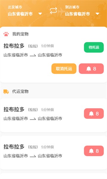 人们可以在该APP上免费发布宠物托运信息,运输人在APP对每个托运需求进行竞价,宠物主人根据运输人的竞价、信誉等级及评分评价来选择最适合自己的运输人。