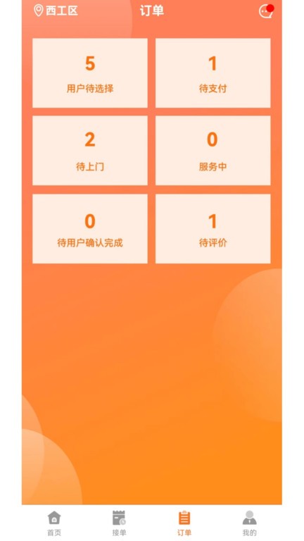 包含的订单类型多样,选择性多样,满足各种服务师傅的订单需求;