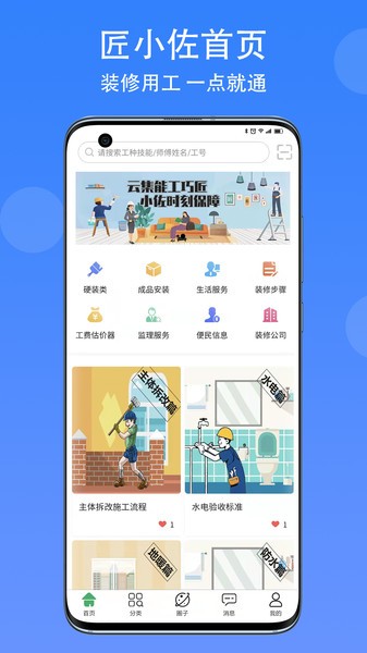 匠小佐,专为家装行业打造的灵活用工软件,在这里你可以便捷的发布自己的家装需求,在线寻找高技术的本地师傅来为你提供服务,软件入驻师傅均为明码报价,安装工作全程透明,平台保障交易全过程,有需要的用户可以下载使用!