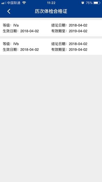 民航电子体检合格证app方便乘务员安全员在线查看体检合格证信息,体检合格证真伪验证等。app内容包括本人体检合格证信息和个人中心模块。