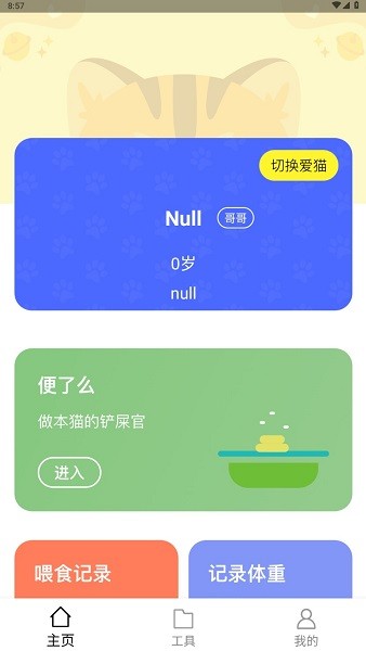 铲屎官助手,涵盖了铲屎官的日常生活中常用的工具,帮您记录猫咪日常消费、饮食、便便状态 提醒宠物的驱虫和饮食习惯.帮助您记忆以及调整计划。