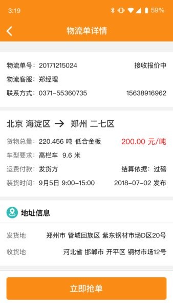 “中钢网物流宝”是中钢网旗下为满足用户钢材交易后续需求,以“互联网+物流”运输模式,全程一站式解决您物流运输的价格、安全、便捷问题。车主通过平台认证审核可以根据您的运营路线免费查看货运单信息进行报价接单。 在程序运行过程中需要开启您的定位权限获取位置信息方便您的装卸货操作,在此过程中会加大手机电量消耗,减短电池寿命敬请谅解。