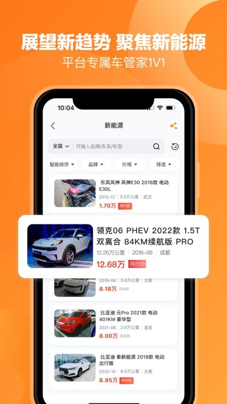 车鸽最新版是一款提供二手车交易买卖的应用app,专业的二手车交易服务平台,全国合作真实本地车商,聚焦新能源,车源可靠丰富,找车无忧,让你足不出户即可买卖天下车。交易方便简单,轻松查询了解车辆信息,提供检测评估服务,放心使用!