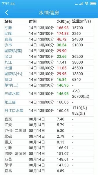 6、拥有水情信息版块,让用户清晰看到各个站点的水情信息,了解水位和流量情况;