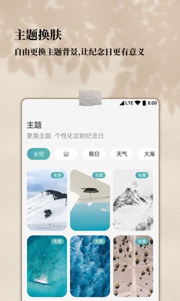 4、主题换肤,自由更换主题背景,让纪念日更有意义。