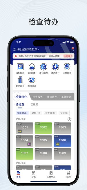 无论是客房清扫、房态更新,还是客需响应,"比邻星"均支持一键操作,简化流程,让繁琐工作变得轻松快捷。