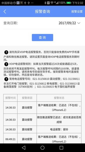查询报警:支持查询汽车的报警记录,了解历史报警的信息;