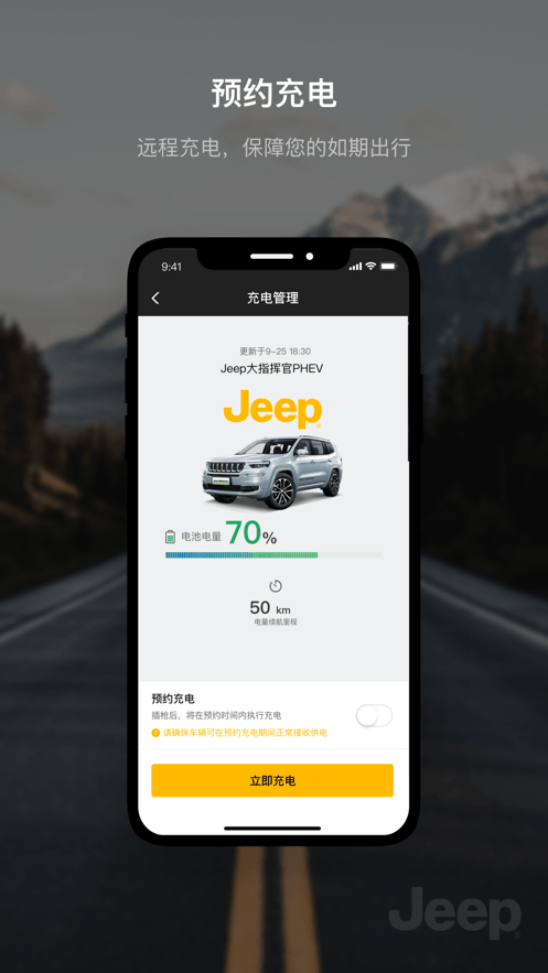 jeep汽车app是由jeep官方推出的手机应用,车主用户可以在手机上查看最新的汽车相关资讯,能看到新品展示,可以预约试驾,远程控制自己的爱车,能查看剩余的油量或电量,一键轻松上锁解锁,可以在线预约充电,出行更心安!