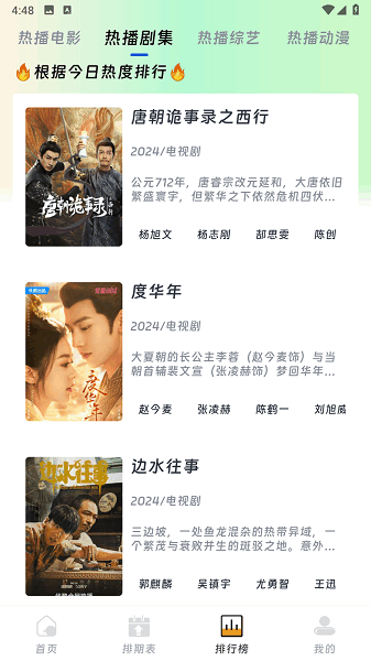 3、热门排行榜单、排期表轻松查看,热播电影、电视剧、综艺、动漫尽在掌握。