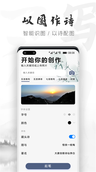 这个软件最让我觉得棒的是它结合了AI技术,还能根据用户需求命题作诗或者以图作诗。也就是说,你可以指定主题或者上传图片,让APP生成对应的诗句,这真的很有创意!特别是它支持自定义背景和音效,分享到社交平台互动性更强,感觉写诗也不再是一个人的独角戏了。