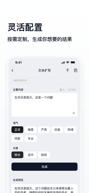 无论是需要扩充内容的文本、精炼的总结还是正式的邮件编写,万能生成器都能提供专业的写作支持,让您的文字更加生动、准确。