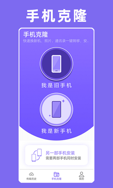 手机克隆换机,换机必备工具!一键传输数据到新手机!一键将您的照片、通讯录、视频等传输到新手机。手机搬家快速搞定,不需要流量!专利算法,稳定高速,领先业内!