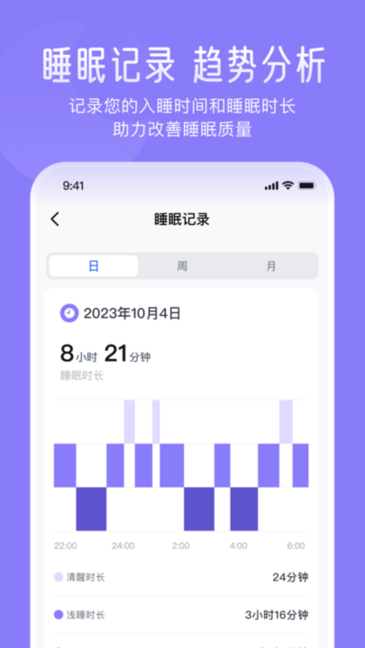 记录您的入睡时间和睡眠时长,助力改善睡眠质量