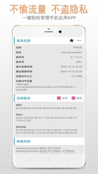 根据生活所需而设计的免费实用工具,软件操作简单,界面简洁、大方、实用,可以帮助您精准快速的提取、分享和管理手机app!再也不用为数量繁多又杂乱无章的app管理而烦恼,帮您一键轻松管理手机应用app!