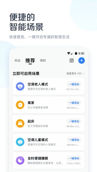 作为智能家居重要入口,美居App可以连接旗下所有品牌以及加入生态链的智能家电和智能设备,还有多个场景玩法让你一键开启智能。