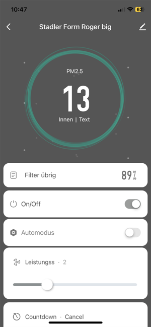 -- 您可以使用应用程序控制 Stadler Form 设备的所有功能,例如在应用程序中调节功率水平、使用定时器功能或激活自动模式。