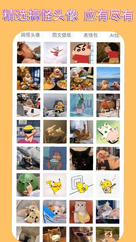 表情包头像是一款永久免费的海量图片素材软件,都是热门图片素材,每天更新各种分类搞笑图片。专门为用户挑选搞笑表情,头像,壁纸等资源,赶紧来挑选自己喜欢的图片分享给好友吧!